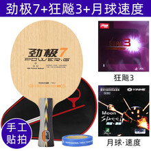 红双喜劲极7乒乓球拍底板七层纯木专业底板加胶皮套餐乒乓球板直板横板 横拍【长柄】+狂飙3+月球速度