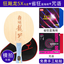 红双喜 乒乓球拍底板狂飙龙5X专业进攻型马龙芳碳狂飙龙五碳素w968横板 横拍/长柄+省狂【蓝海绵】+咒语